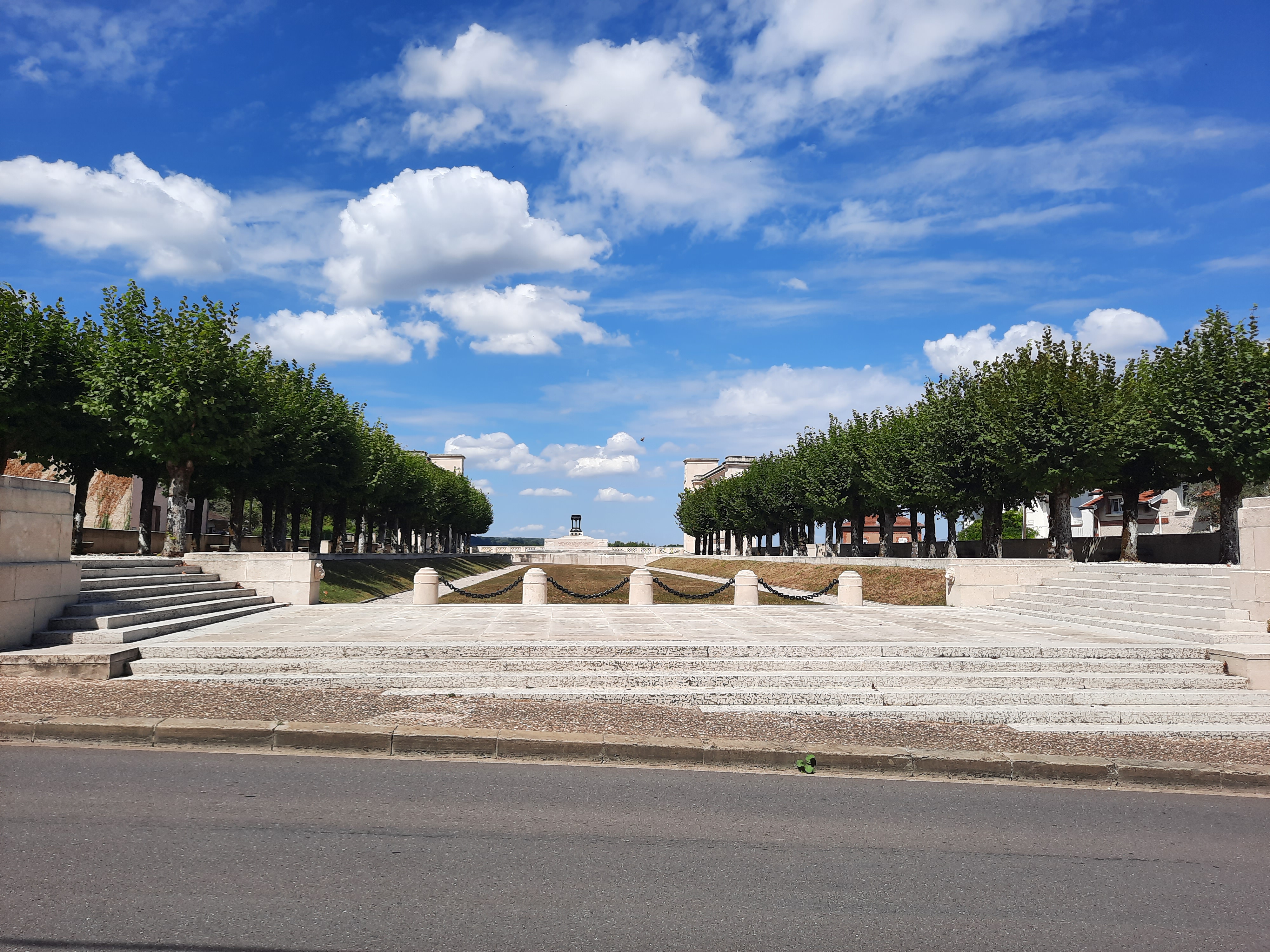 Un monument assez grandiloquent en bordure de la charmante ville de Varennes-en-Argonne. Beau panorama sur les champs.